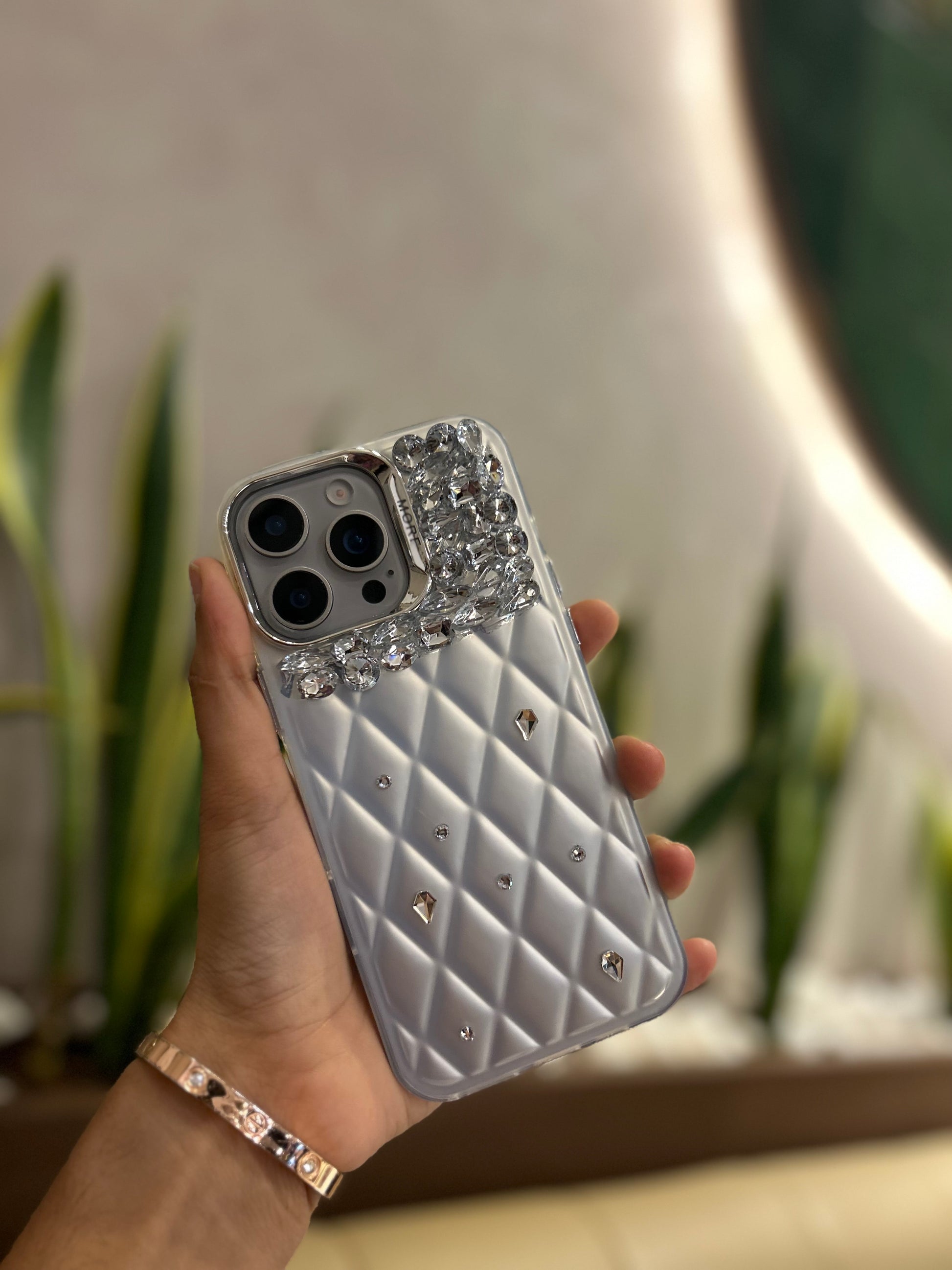 Iphone 15 Pro luxury Quilted Rhinestone Cover
