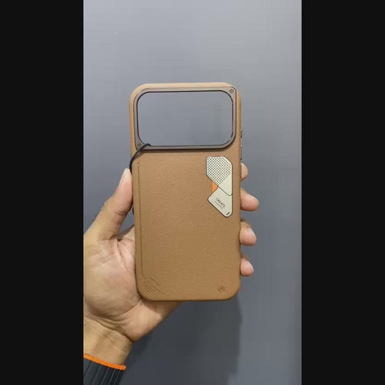 iPhone Metal Design Premium Leather MagSafe Cover (Desert Titanium)