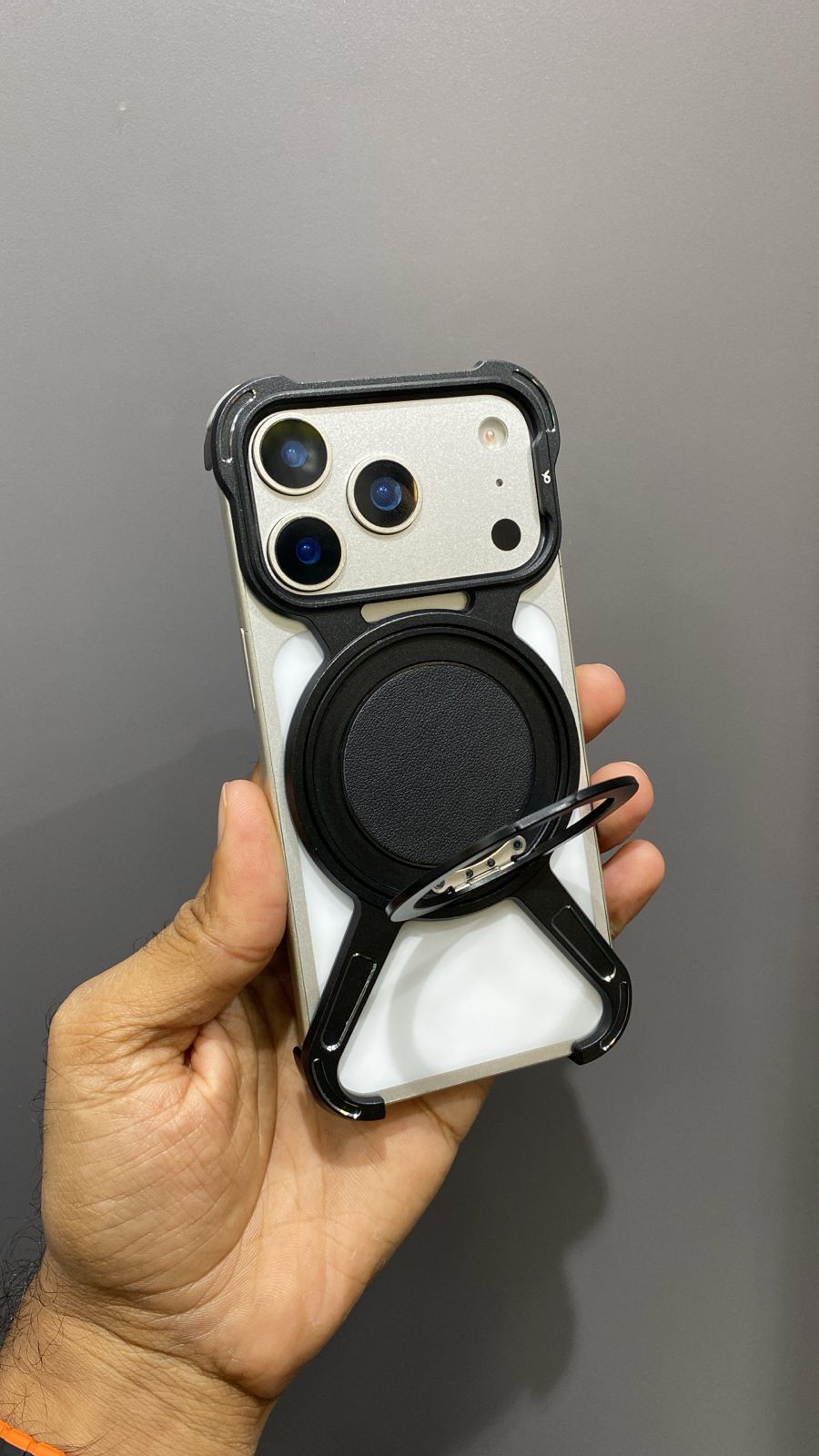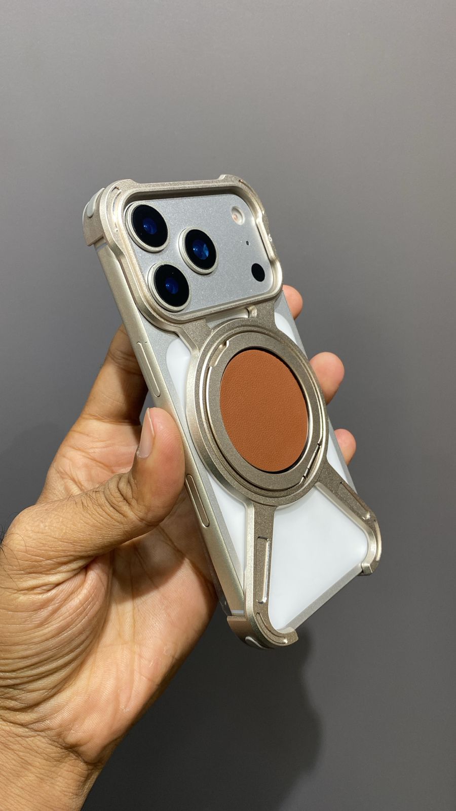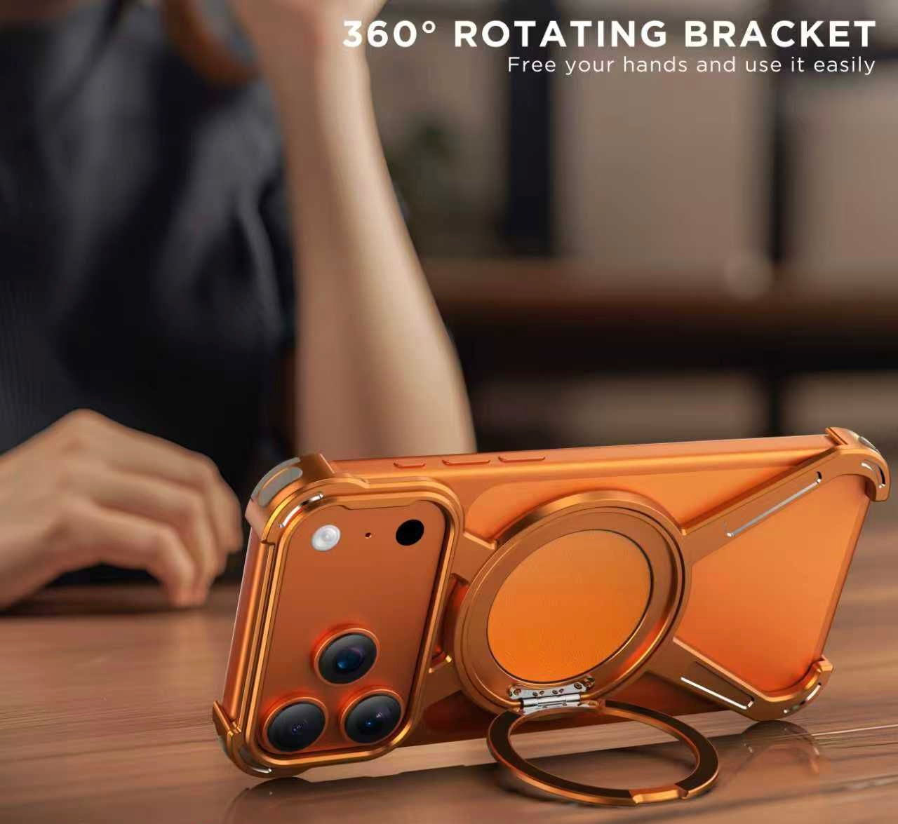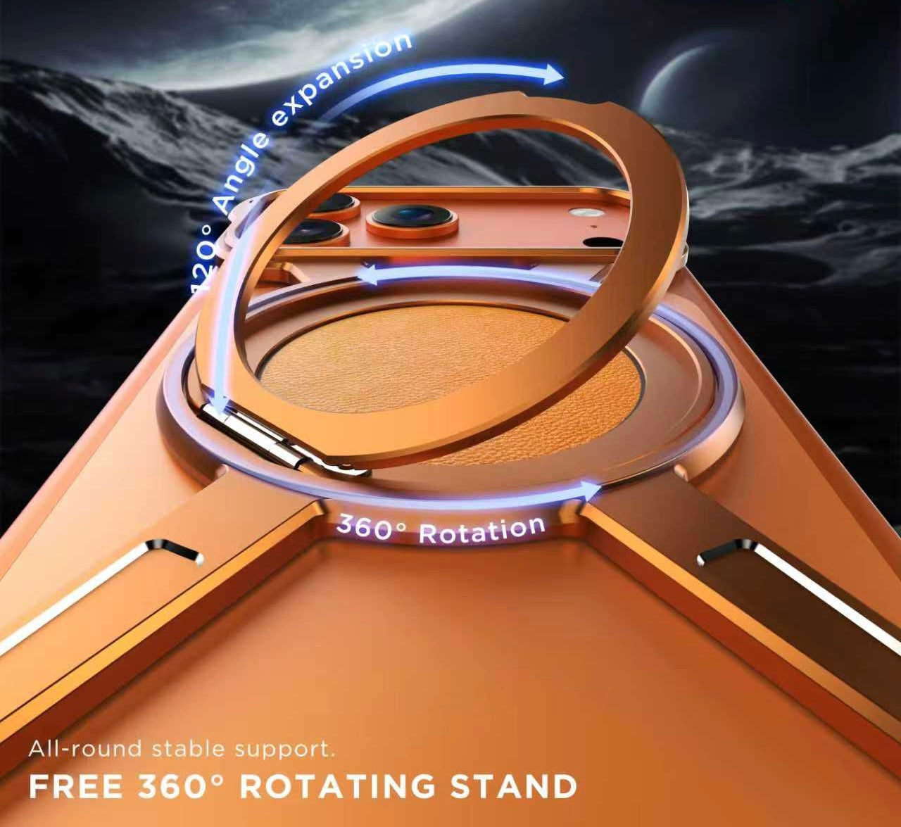 The integrated 360° rotating metal stand is seamlessly built into the back, allowing effortless hands-free viewing in both portrait and landscape modes. Designed to elevate both style and function, this case is perfect for work, travel, and everyday use—where form meets precision.